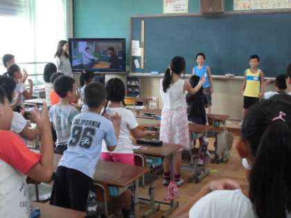 低学年・中学年は,天気を表す言葉を中心にジェスチャーをつけて歌っています。