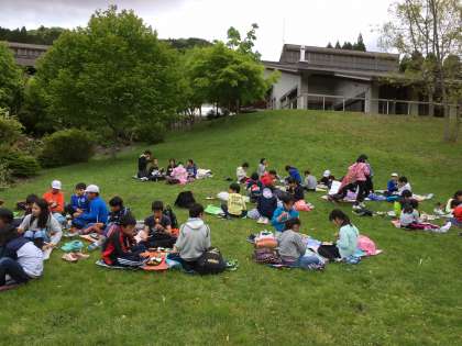 芝生で,気持ちよくお昼ご飯を食べました。