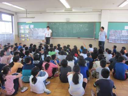 総合的な学習の時間で,「世界に目を向けて」をテーマに,外国との関わりについて調べていきます。今日は学習のスタートということで,6年生全員で知っている国の名前をあげたり,自分たちが住んでいる嵯峨野地域が外国と関わっているかどうかを予想したりしました。総合的な学習の時間は,課題について調べ学習を行いまとめていくという活動を繰り返し行っていきます。次の時間には,実際に地域に出向いて,外国との関わりについて調べていきます。新しい発見や知識をどんどん増やしていきたいと思います。