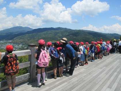 みんなでがんばって登った後,青龍殿の舞台から京都の町を一望しました。