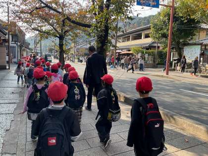 嵐電を降りて、中之島公園・嵐山東公園方面に向かっています。道幅の狭い箇所もありましたが、周りをよく見て歩くことができました。