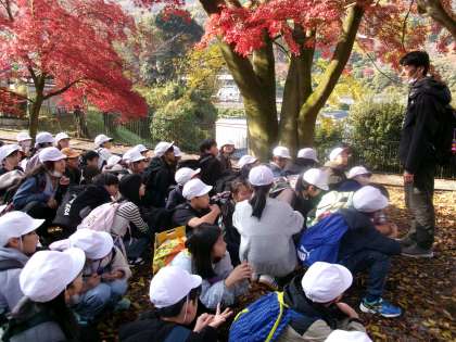 インクラインを見た後は、田辺朔朗像を見ました。田辺朔朗は疏水工事の技術者として、琵琶湖疏水建設に深く関わった人物です。子どもたちは、田辺朔朗について学んでいたので、石像を見たことでその偉大さを感じ取っていました。