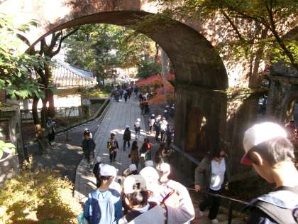 琵琶湖疏水の水路橋である水路閣も見に行きました。水路閣は南禅寺の境内にあるので、田辺朔朗が境内の景観に配慮して設計・デザインを行ったそうです。子どもたちは水路がどこに繋がっているのかを知り、その距離の長さに驚いていました。