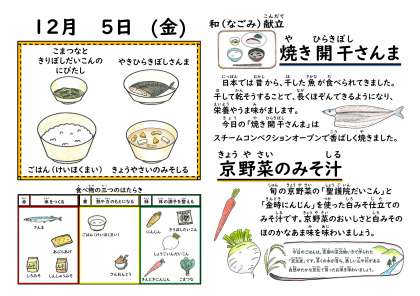 ごはん(京北米) 焼き開干さんま 小松菜と切干大根の煮びたし 京野菜のみそ汁 でした。