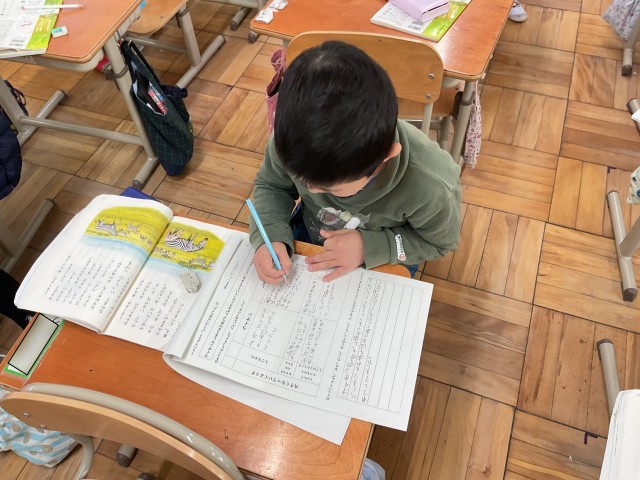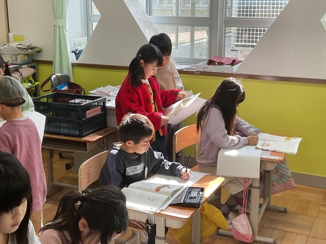 自分に合った方法とペースで学習を進めていて、友達と何度も伝え合うことで、少しずつくらべる力がアップしています。