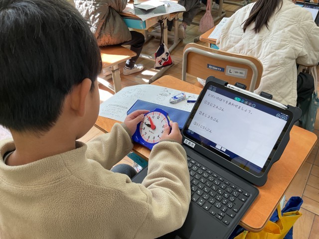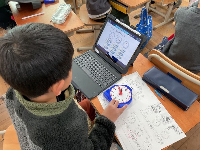 時計のはりを合わせたり、デジタル時計とアナログ時計を比べたりして、素早く時計がよめるように練習しました。