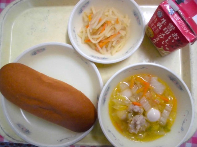 肉だんごのスープ煮に入っている「肉だんご」は、給食室で一から作りました。