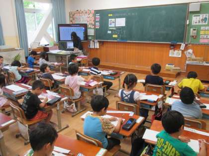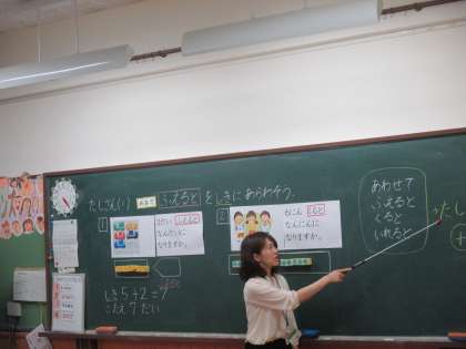 増加の場面で,たし算の式にかいて答えを求める学習をしました。
