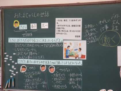 6月11日(日)4年の道徳は,「おたまじゃくしの世話」という教材で学習しました。