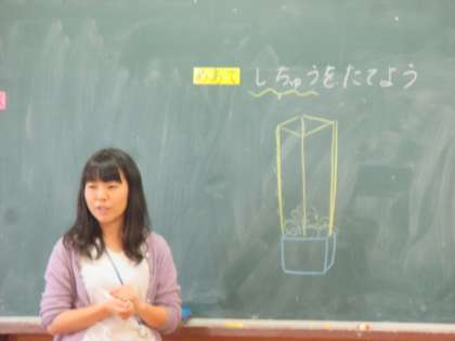 支柱の意味や立て方,追肥のやり方の学習をしました。