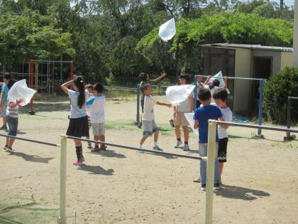 ビニール袋に貼った空気を触ることで,空中に何かあることを実感します。