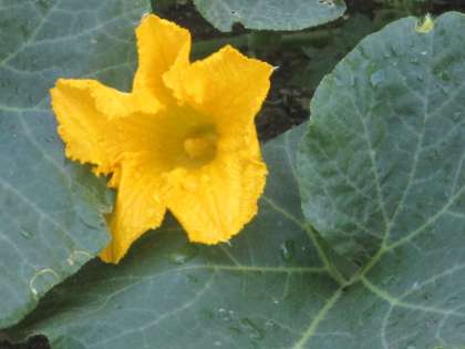カボチャやトウモロコシは花が咲いています。