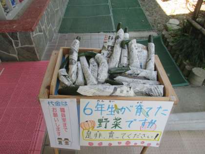 キュウリは,実がなって,職員室前に,値段を付けて売り出しています。