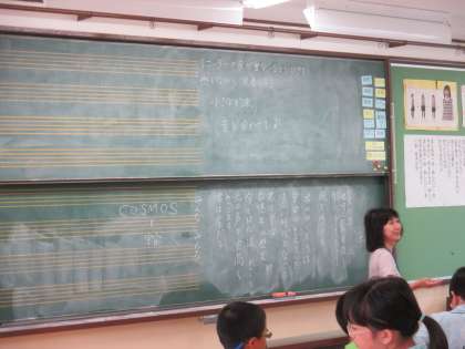 6月20日(火)5年2組の音楽は,「COSMOS(宇宙)」という曲を歌いました。