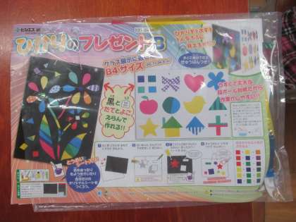 カッターで形を切り取って,色セロファン紙を貼ります。