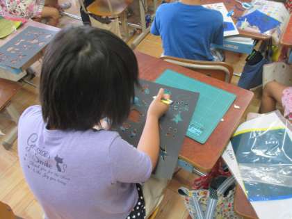 6月22日(木)2年の図工は,工作で,「ひかりのプレゼント」という作品に取り組んでいます。
