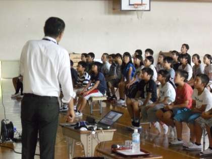 体育館で,KDDIの電話会社の方が,携帯電話やスマホの危険性や使い方について,教えてくださいました。