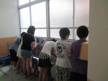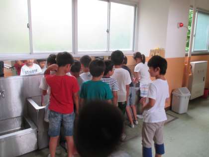 子ども達は,運動場での遊びを止めて,手洗い・うがいをして,教室へ入りました。