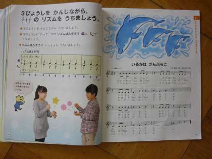 「イルカはざんぶらこ」という曲を,タンバリンや鈴などを使って,リズムうちをしながら歌いました。