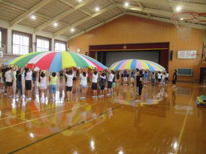 9月6日(水)昼休みに,さくらんぼ・4年・代表委員・計画委員が,「バルーンであそぼう」の練習をしました。