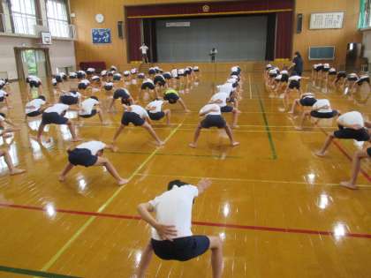 9月6日(水)3・4年合同体育で,運動会の団体演技の練習をしました。