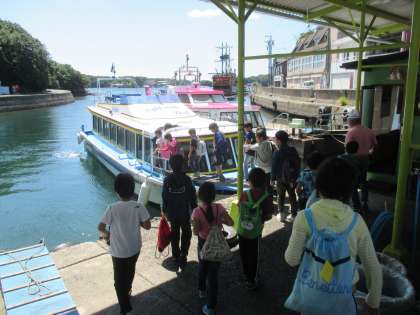 4年生は、賢島港につきました。近鉄賢島駅のすぐそばにある港です。ここから、英虞湾を船で、みさきの家を目指します。
