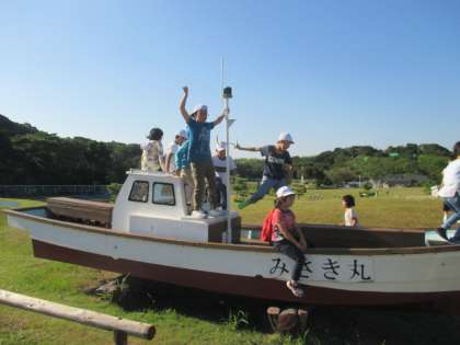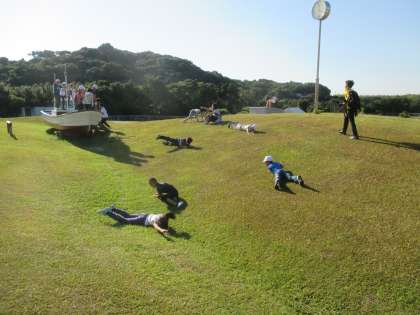 4年生は、散策の後、芝生の広場で遊びました。
