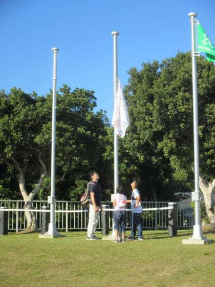 校歌を歌いながら、旗を降ろして、先生の話を聞きました。