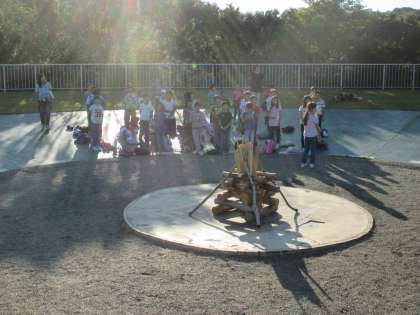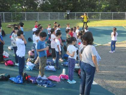 4年生は、芝生の広場で遊んだあと、「ゆうべの集い」をしました。