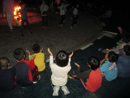 4年生は、夕食の後、キャンプファイヤーをしました。