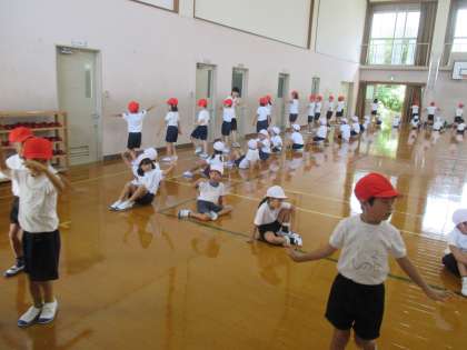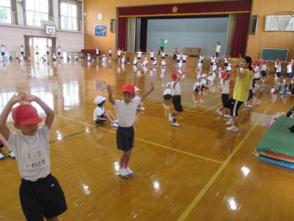 9月13日(水)1・2年さくらんぼ合同体育で,運動会の団体演技の練習をしました。