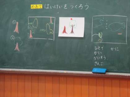 動物の絵を描いたり,背景を描いたりしました。