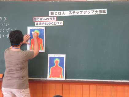 栄養教諭から,朝食の大切さについて学習しました。