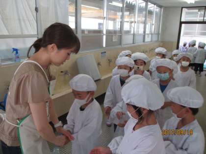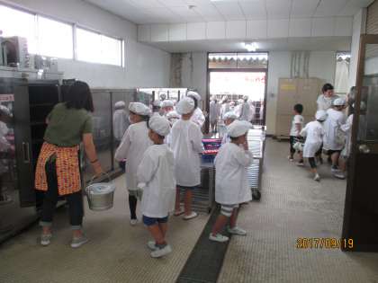 いいにおいのする中,子ども達は,嬉しそうに給食を取りに来ています。