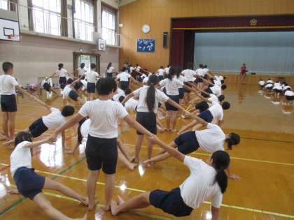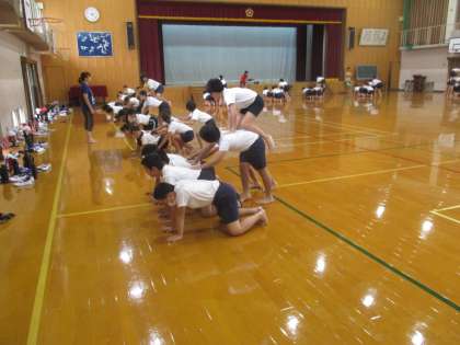 9月20日(水)5・6年さくらんぼ学級が,体育で,組体操の練習をしました。