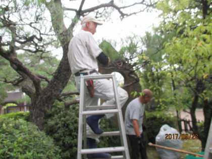 昨日に引き続き,今日も松の剪定をしていただきました。