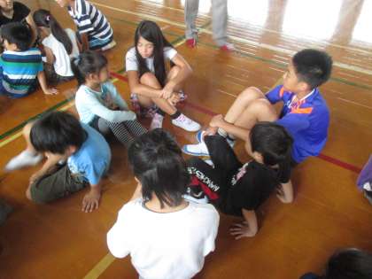 みんなが頑張って,すばらしい運動会になった話の後,たてわりで同じグループの他の学年の友だちの良かったところを話し合いました。
