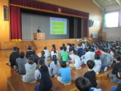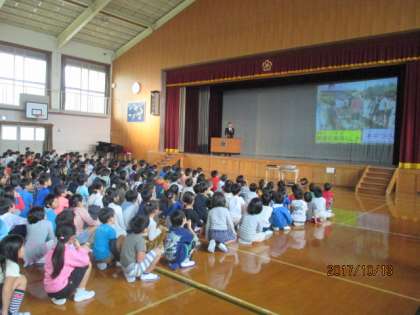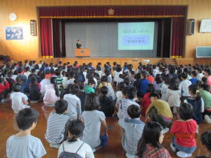 テーマ「前期成長したこt,できるようになったこと,後期に頑張りたいこと」という題名で4年生,5年生の児童が代表して発表しました。