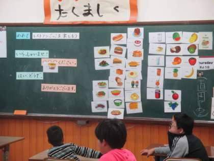 10月19日(木)さくらんぼ学級の英語活動は,「レストランごっこを楽しもう。」でした。