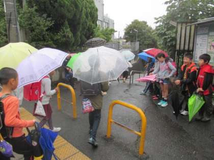 雨が降っていましたが,笑顔で元気な挨拶ができました。