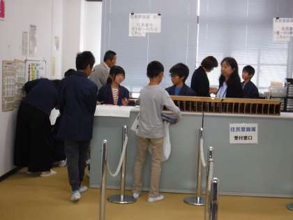 少し緊張しながら,仕事を体験しています。