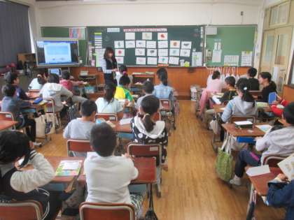 10月24日(火)5年1組の英語活動は,5年2組の担任が授業をしました。