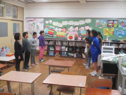 向かい合わせになって歌うことで,声を響かせ合うことができました。