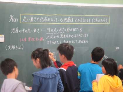 11月9日(木)6年1組の理科は,「地層」の学習をしました。