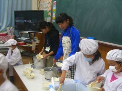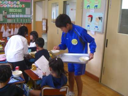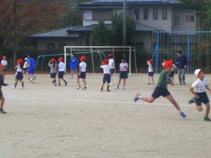 休み時間には,運動場に出て,一緒に鬼ごっこをして走っている姿や,給食の補助や,図工の工作では,一緒になって作品を作っていました。