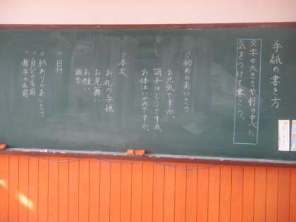 はじめの挨拶,本文,日付,おわりの挨拶,自分の名前,相手の名前など,各場所や書き方も学習しました。