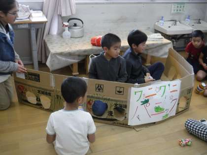 近くにある幼稚園・こども園・保育園に5年生が行って,一緒に活動をしました。