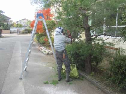 11月21日(火)地域ボランティアの方に,校内の樹木剪定をしていただいています。
