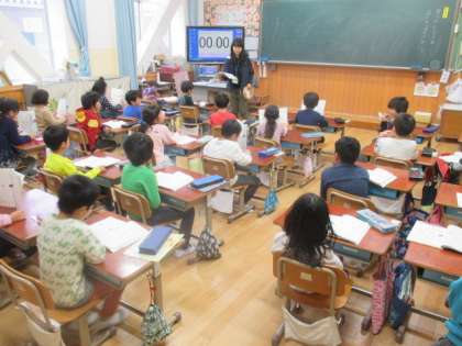 教科書をリズム良く音読しながら,日付や曜日の言い方に慣れていきました。