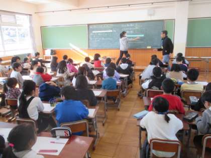 12月6日(水)3年の算数は,学年合同で,分数の学習をしました。